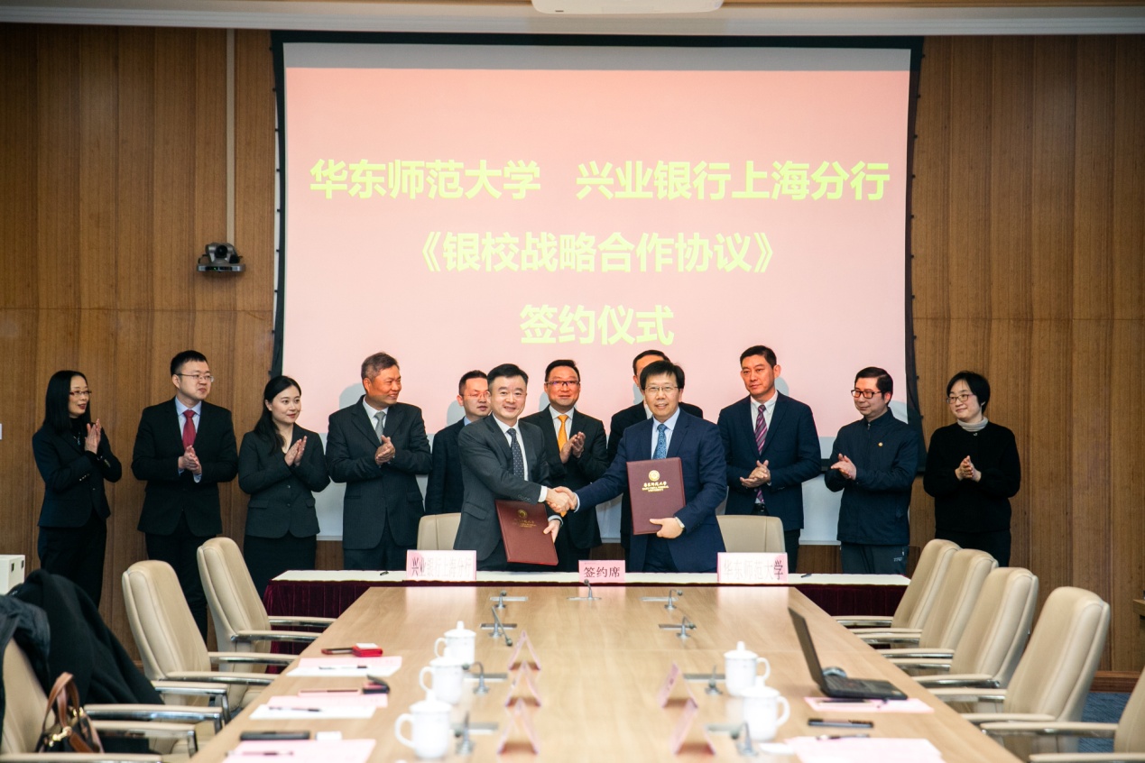 2019年12月24日,兴业银行上海分行与华东师范大学举行《银校战略合作协议》签约仪式。兴业银行上海分行党委书记、行长夏维淳,党委委员、副行长胡刚,华东师范大学党委副书记、校长钱旭红,党委常委、副校长李志斌,以及双方相关部门负责人出席签约仪式。